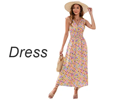 ESOFT Vestido bohemio de verano para mujer Estampado floral Correa de espagueti Cuello en V Fruncido Maxi Vestido de playa Vestidos de verano